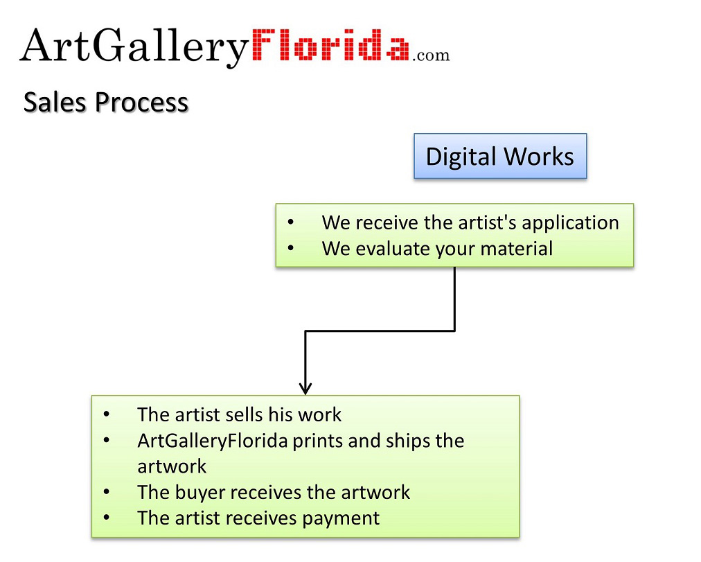 You send us the DIGITAL art and we sell the PHYSICAL works throughout the US.