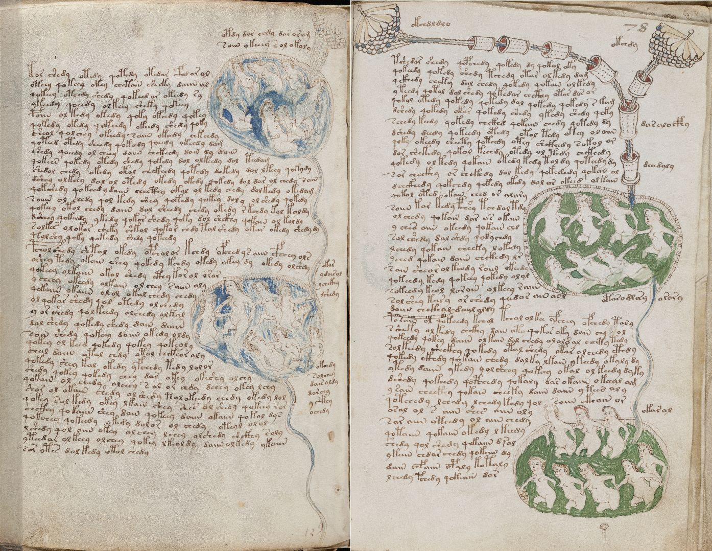 The text is written in an unknown language with an alphabet that does not resemble any known one, and accompanied by a set of enigmatic illustrations: impossible to identify plants, astronomical diagrams, female figures immersed in bathtubs or tubes, and maps that evoke constellations or biological systems. All of this has led to the manuscript being considered both a work of esoteric art and a possible lost scientific treatise.